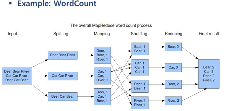 - ex) R = 2일때 wordcount에서 reduce를 실행하면 car/bear은 reducer 1에 deer/river는 2로 보냄