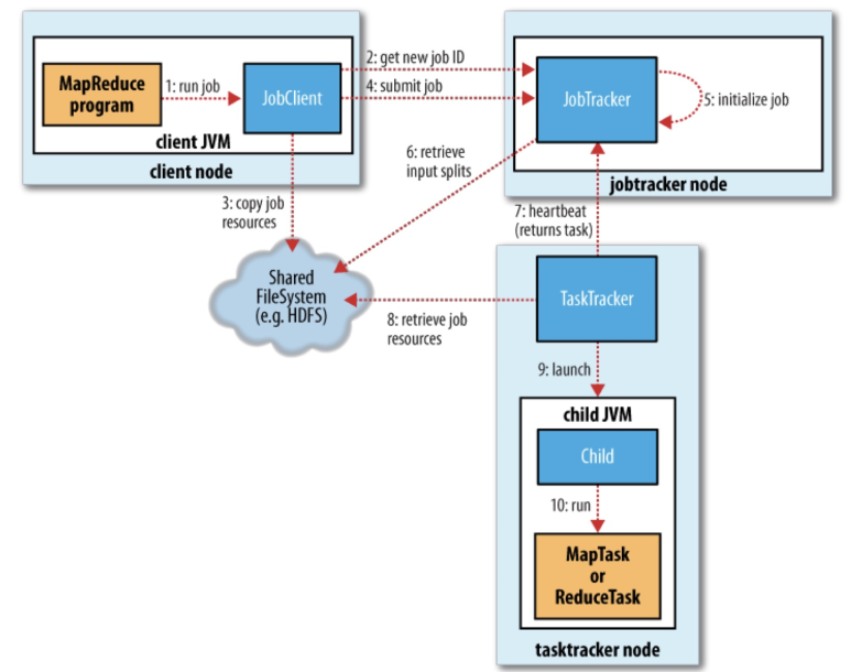 - 프로세스가 끝나면 성공적으로 끝나든 에러가 발생하든 JobTracker에게 결과를 알리고 어떤식으로 조치할 지 요청