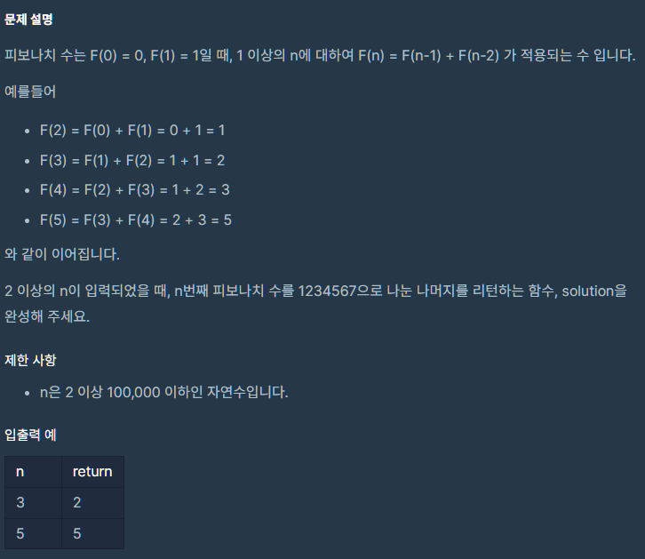 n번째 피보나치 수가 int 형에서 커버가 가능한 범위를 넘겨버릴 수 있기 때문에