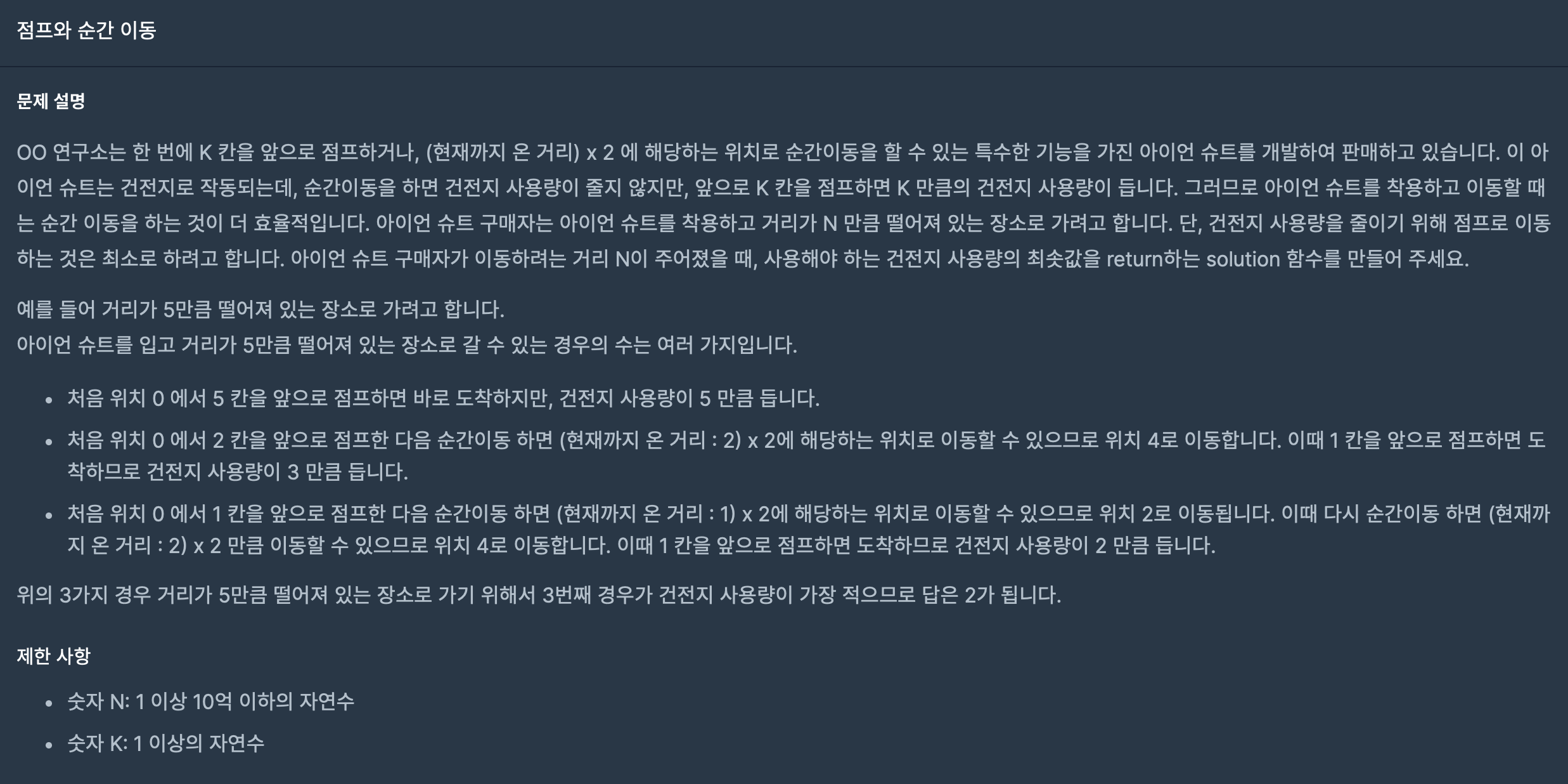 배터리를 최소로 사용할 방법을 생각했다 -> 순간이동을 최대로 사용! 점프를 최소로 사용!